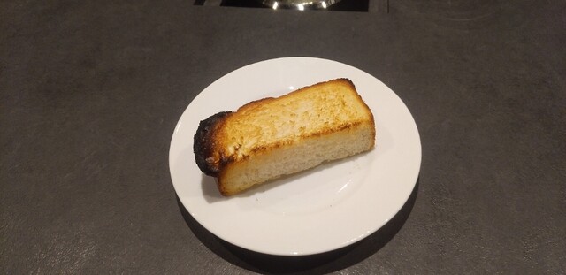 パンドミ風、しっかりカリカリにトーストされて、お料理の前についつい。