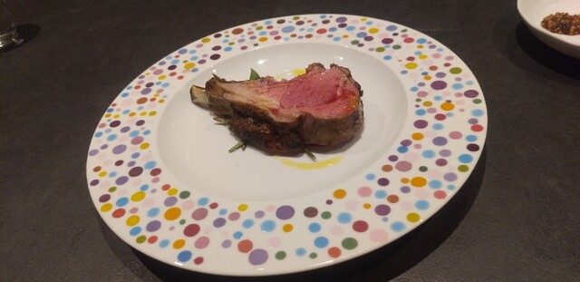 オーガニックの仔羊をじっくり炭火焼きに。しっとりと細かな繊維質の仔羊に、レモン、粒マスタード、柚子胡椒、生胡椒をお好みで。柚子胡椒が自分の中では一番好みでした。そのスパイシーさが、ミルキーでジューシーな仔羊の旨みを引き立てます。