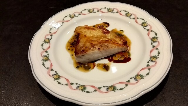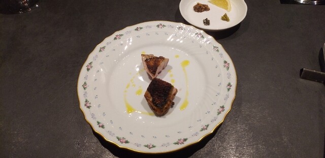 長崎ののどぐろの炭火焼きにのどぐろのお出汁にサフランを加えたリゾット。身をしっとりとさせたのどぐろも絶品ですが、お出汁のきいたリゾットがまた泣くほど美味しい。アルデンテ仕上がりのリゾットの食感がまたたまらない。