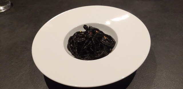 烏賊のラグーに、富山のホタルイカを合わせ、真っ黒なイカスミを練り込んだ自家製パスタ“トルネッテ”を合わせて。イカざんまい、ネーミングから美味しい。しきちゃんがパスタを担当されているそうです。☆(^_^)/