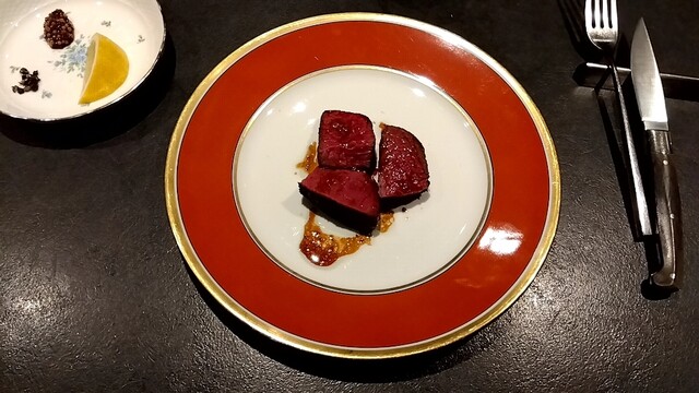 まわりは香ばしく焼き、中は綺麗なピンク色でレアめ。力強い味わいの肉質を堪能。