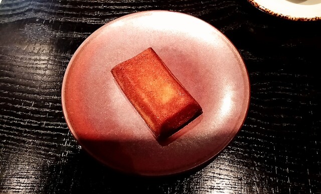 金塊の意味を持つフィナンシェ、シェフが本来の表にして、お皿にのせて下さいました。