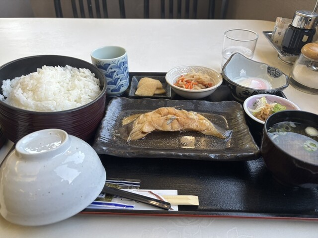 ご飯はおひつに2杯分と日替わりのお魚と小鉢。普段はあまり食べない煮魚ですが旨いデス〜。焼きシャケも肉厚。