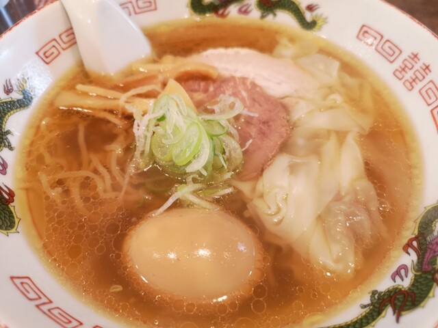 コレはいわゆる「全部乗せ」でワンタンとチャーシュー、煮卵の全てを楽しめるのでオススメ!