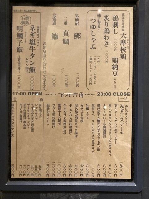 下北六角下北沢、池ノ上、東北沢/居酒屋、海鮮、日本料理