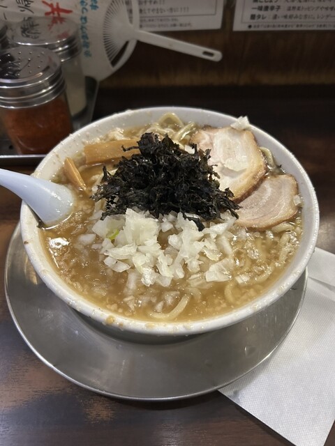 岩のり、玉ねぎが良く合いますな。焼豚もほろほろな感じで好み。麺は改めて気づきましたが、かなりの太麺で背脂が溶けた熱々の醤油スープにドンピシャ!でした。