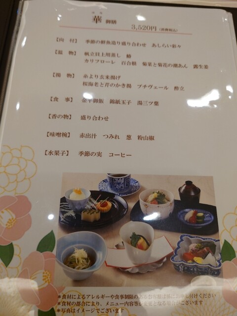 久し振りですが、何回も食べた菜彩御膳3,520円。季節ごとにメニューが変わるような気がします。