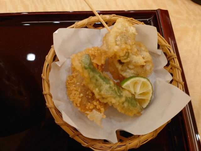 糸より玄米揚げ ちい茸 獅子唐 スダチ