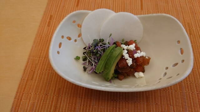 甘海老と長芋の叩き 菊菜 べっ甲あん 一味