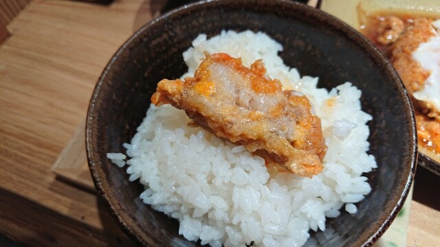 ご飯は固めで、自宅の釜戸炊きご飯(これが別格においしい)の次位ですがとてもおいしい。とんかつによく合います。