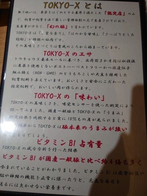 他の店で黒豚は食べたことはあるものの味の記憶になく、TOKYO-Xは食べたことはないかも。