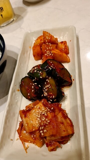 キムチはそれほど辛くなく食べやすく、サラダはめっちゃ好みの味付け