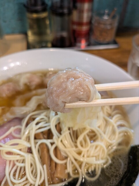 かねてより、ずーーっと食べたかった当店へ10:50に到着。待ち4名。11:00in、券売機にて、折角なのでチャーシューワンタン麺¥1500を購入、カウンターへ。平日にもかかわらず、11:05には満席に!退店時外に5名、中に2名の待ち人。