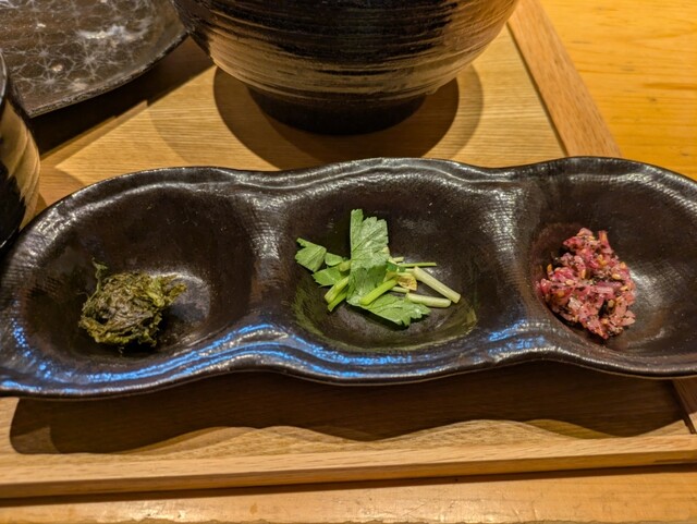スープ割りをお願いすると、薬味が3種付いて来てびっくりしました。