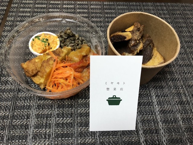 ミヤモトさんの惣菜は、季節のやさいのおかず盛り合せと国産豚スペアリブ自家製スモークの2種を、夕食のおかずに買って帰りました!