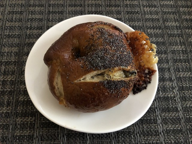 抹茶のは、通常のクッキークリームチーズと見た目は全く同じなんですが、中のクリームチーズに抹茶が入って、メッチャ和風テイストの美味しさですねぇ〜‼︎