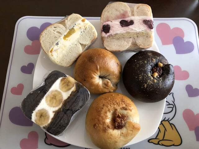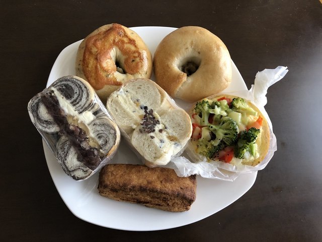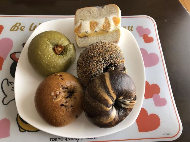 この日(6月23日)は、しょうゆ豆クリームチーズホワイトチョコ、とうもろこしベーコンチーズ、珈琲マロンクリームチーズ、バナナティラミスサンド、紅茶リンゴクリームチーズの5個を予約GETしました!