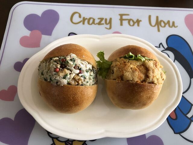 桜あんクリームチーズ、菜の花ベーコンタルティーヌ、チキンサラダサンド(ごまチリ&マスタード)を予約してました!