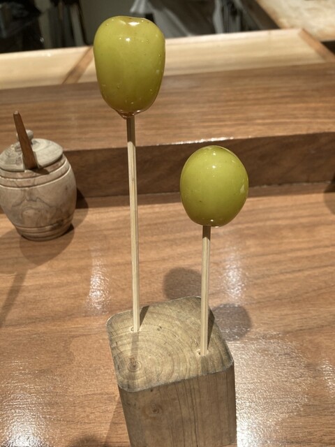 そして最後にシャインマスカットの果実飴と自家製燻製の生キャラメル。台湾茶の東方美人と一緒に頂きます。濃厚でトロトロの生キャラメルは悶絶しそうです。