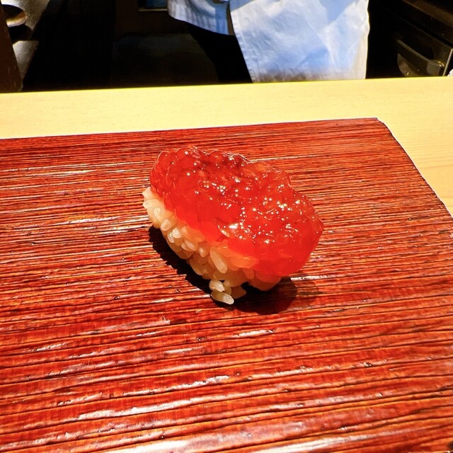 10月の㐂邑さんに運良く訪問でき、念願の筋子の握りを頂けました。
