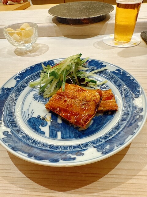 11月のなんばさんです。つまみも基本コンセプトを維持しつつ、細部は握りも進化を続け、雑味のない綺麗な味が美味しいです。キンキのの煮付けは以前より出汁の量が増え、若干甘味も味の濃さを控えめにして、美味しさが増した気がしました。握りも最後に鮪を持ってくる事で、脂の乗った冬の鮪がより満足度を高めている印象です。