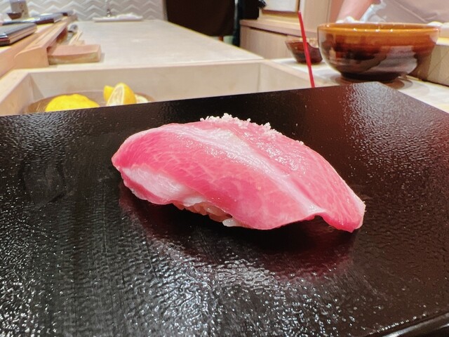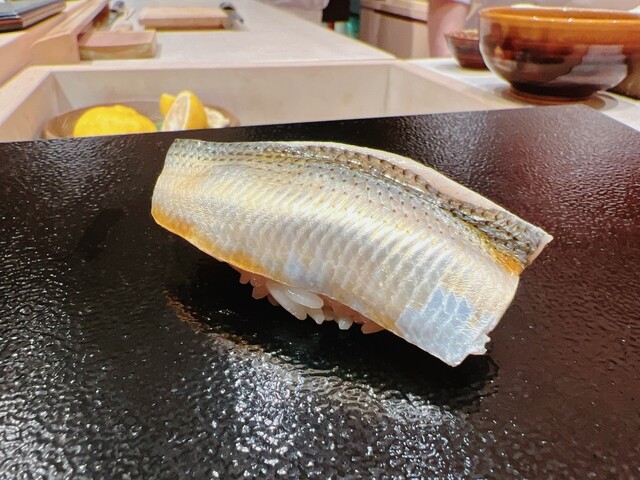 非常に質の高い魚を本日も堪能させて頂きました。お刺身と握りで出された真鯛は明石と今治の食べ比べとなり、更に鯛の出汁と合わせた白子は今シーズン食べ納めにふさわしい旨味で、合わせて、真鯛の深みを楽しめます。