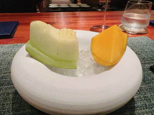 7月の蒼さん、今回も抜群の美味しい魚が味わえました。雑味の無いピュアな鱧の旨味を楽しめるコンソメ、うにを味わうフェデリーニ、真魚鰹の味が濃いムニエル、そしてインパクトMAXでまた恋しくなるビスクと怒涛の流れ。更に、スープが旨い鮑に、甘さと酸味のコントラスト楽しめる冷製コーンスープからのメインへと何度来ても新鮮さも失われない。美味しい。