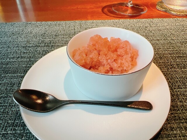6月の蒼さん、自分の好みではこの季節が最強です。特に超レアな愛媛産の赤ウニは、これまで食べた愛媛産とは別格の雑味のない味わいで、蛤の出汁で茹でられたパストとはベストマッチです。瀬戸内神経締めの真名鰹、黒鮑と続き、赤座エビのビスクとなるので、美味しさが止まりません。