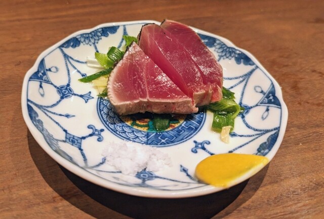今回の鰹、脂の乗りが半端ないです。口に入れた瞬間、藁の香ばしい薫香と共にトロッととろける濃厚な脂…!厚切りなのに臭み皆無で、たっぷりの薬味と塩だけでいくのが正解。無限に酒が進みます。