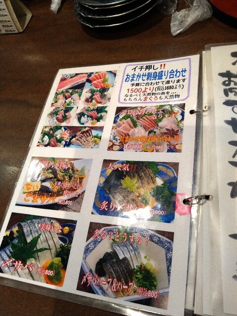 とにかく評判通り、刺身盛り合わせがお値打ち過ぎてビックリ。料理提供の際に大将さんが刺身各ネタの名前をわざわざ鉛筆で書いてくれたものを持ってきてくれた。