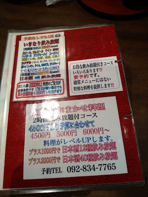 日本酒も飲み放題だと1人4000円。日本酒の品揃えがものすごく充実しているみたいなので、せっかくならケチらず日本酒も飲めるやつにすれば良かったかな。