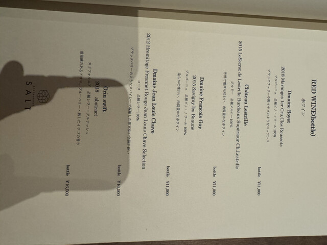コース料理はしっかりお腹いっぱいになる量でお酒の種類も豊富で進み飲み過ぎてしまいました。