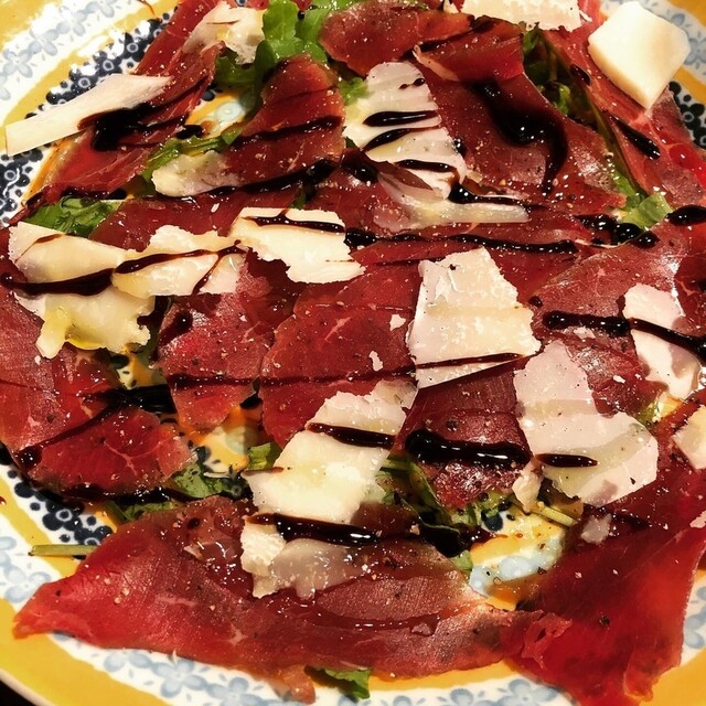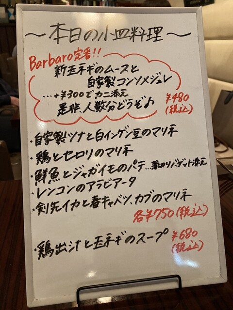 恒例の年始飲み食いお喋り会は贔屓のイタリアン Barbaroで‼️ 普段は2-3人で始めるのだが、この日は初参加のSご夫妻もご一緒してくださり、珍しく5人で賑やかに開始だ。昼12時に集合して、まずはスパークリングワインで乾杯! 店まで30分ほど歩いて行って多少カロリーを事前に消費するという無駄な努力をしていたので、より美味しい~ 最初の料理は、お店お薦めの釜揚げシラス スプラウト 人参 トマトのサラダ。わいわいシェアして楽しい☺ イケメン美声の土井店長にお薦めされて、上田シェフ本日一押しの冷前菜は、酢〆した真サバのカルパッチョ。西洋わさびのアクセントが効いて美味♪ 以前食べてちょっと衝撃だった牛肉の生ハム ルッコラのサラダ(ロンバルディア風ブレザオラ)も。普通、ハムって豚でしょ。牛なんですね、これは♪ パルミジャーノとバルサミコソースがまたいいね! ここでピエモンテ州の辛口白ワイン・ガヴィが出される。果実味しっかりなので、小玉ねぎと芽キャベツのフリット、スカンピに合うね! 次にトスカーナの軽めで辛口のロゼワインが。華があっていいね! エゾ鹿の煮込みとキノコのリゾットに合わせてもらった。もちろん、こちらも激ウマ S夫妻もご機嫌で楽しんでくれているようで、こちらも嬉しい☺