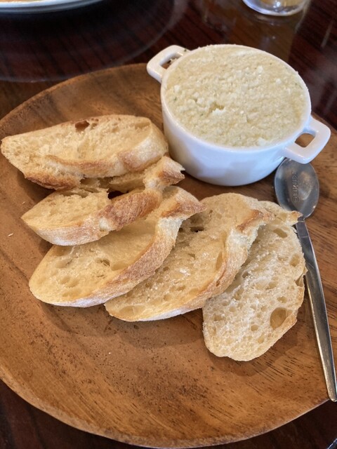 ●真鯛とポテトのパテ(北イタリア風マンデカート)、メルバトースト添え:あっさり、でも滋味深くて、みんなパンを幾度も追加!