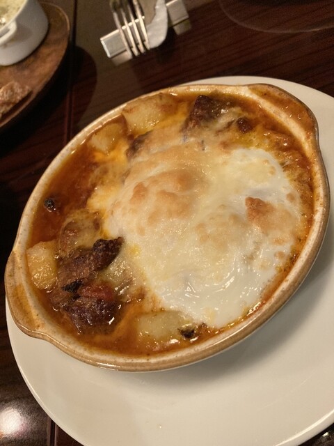 ●牛スジとポテトの煮込み オーブン焼き:娘が注文。高校生でこんなの頼むんかいな。こんなの美味しいに決まってるよね!