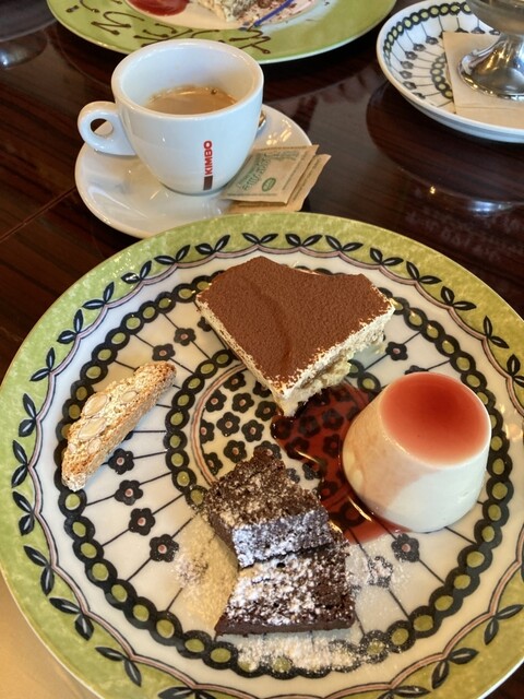 ●デザートプレート:息子の誕生祝い!娘は幼少期からの決め打ち、ミルクジェラート。私は盛り合わせ。娘と私はエスプレッソのダブルで。