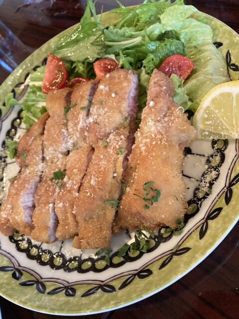 ●ここでネッビオーロをボトルでいただく。軽快で美味しいワインだ。「香りがいいぞ」と父も気に入った模様。地理好きな父は店長の上田祐実さんと産地について軽くお喋り。