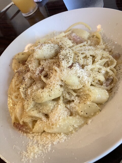 ●ホワイトアスパラガスのカルボナーラ・スパゲティ:今の季節ならではの食材!美味しいカルボナーラだ。