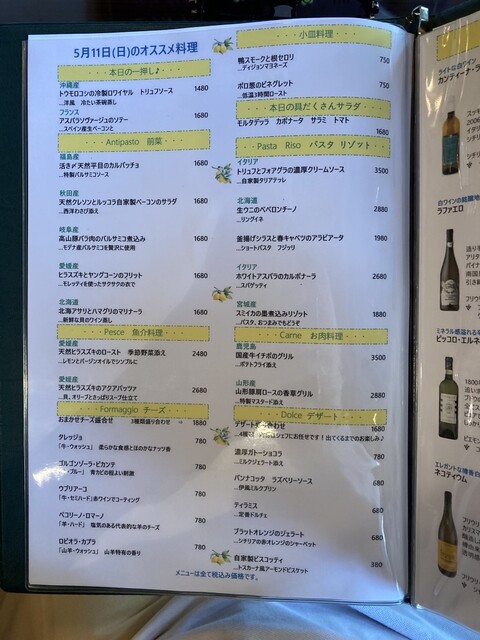 まずは乾杯。N子さんと私はスパークリングワインで、Sさんはビール、子供たちは桃ジュースで。前菜は新玉ねぎのムース‼︎ 息子と私は蟹をトッピング♪ 前菜のムースはこのお店のシグネチャー、上田晃裕シェフのシグネチャーだと思う。娘はなっちゃんセットを注文。生ハム、ブラータ、カポナータの鉄板組み合わせ。幼少期から変わらずだ。裏メニューとしてまだあるのもありがたい。ハム盛り合わせでは、息子はチョリソが辛かったらしい。大人の味だものね。ブラータのカプレーゼ。ここで頂くトマトはいつも甘くて味が濃くて美味しいなぁ。もちろん、ブラータもミルキーで美味しい。メジマグロのカルパッチョ、特製バルサミコソースとホースラディッシュ。美味なり。蝦夷豚の田舎風パテ。肉の旨味がぎゅぎゅと凝縮! 子供たちが頼んだパルミジャーノのリゾットは、子供たち用なので黒胡椒抜き。このところの物価高騰で、とうとうスーパーではパルミジャーノを見掛けなくなった。だから家では粉チーズばかりになっていたので、嬉しい。息子は蟹のトマトクリームスパゲティを注文。前回来た時に食べて、かなり気に入ったようだ。メニューに無くとも食材があったので対応して下さって、ありがたや。こういう所が素晴らしいよね。結局、スパークリングワインはボトルでも頼んだ。ヴィノジア ヤーデ、乾杯時のと同じものだ。この日は暖かい日だったので、辛口の泡が美味しい。ホワイトとグリーンの極太アスパラガスのビスマルク、半熟卵とパルミジャーノで。シャキシャキしたアスパラガスが美味しい。ビオ・ビオ シャルドネのオーガニックワインもボトルで頼んだ。柔らかめで美味しい。春野菜のフリット盛り合わせ! サクサクしたビール入りの衣が、青々とした野菜の旨味を封じ込めている。この日は筍もあって、これも美味しい。Sさんが子供たちのを見て羨ましくなったので、パルミジャーノのリゾットを注文。こちらは大人用なので黒胡椒入り。このところの物価高騰で、とうとうスーパーではパルミジャーノを見掛けなくなった。だから家では粉チーズばかりになっていたので、濃いチーズの味が嬉しい。ボロネーゼのペンネリガーテは、メニューではスパゲティだったけど、ショートパスタをつまみにするのが大好きなSさんの要望による。肉肉しくて美味しいよ! 大人も息子の真似して、蟹のトマトクリームをペンネリガーテで。これも美味しいなぁ。全部美味しいけど‼︎ 娘はひと足先にデザート。幼少時から好きなミルクジェラートと、最近目覚めたビスコッティ。後者はエスプレッソに浸して食べるのだ。娘はデザートとエスプレッソを摂りながら、S夫妻相手に熱弁を奮っていた。赤ワインは先程の白と同じビオ・ビオのメルローで。そして、わーいわーい、牛肉ハラミのロースト‼︎ メニューに無かったけど店長のお勧め‼︎ 噛めば噛む程に味が出る肉と美味しいワインの組み合わせは、愉悦そのものだ。大人のデザート盛り合わせは、ティラミス、ガトーショコラ、ジェラート、ビスコッティ。娘に結構取られたけど。そうしたら娘が、え、また⁉︎のミルクジェラートお代わりをしていた。