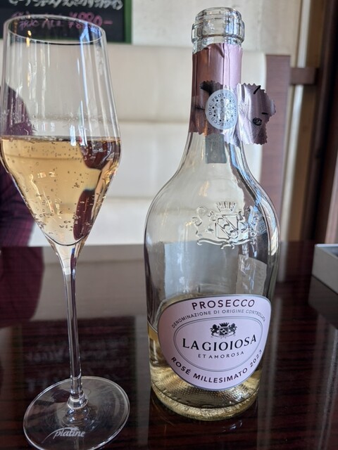 先んじて到着していたメンバーはモレッティを飲んでいたが、改めてスパークリング・ワインで乾杯‼︎ ヴィノジアのヤーデは香りも良く、辛口で美味しいなぁ。