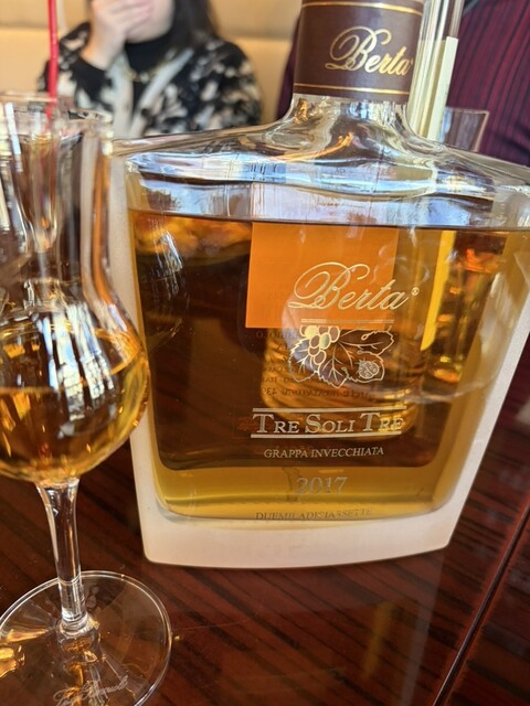 ● エリージ グラッパ ディ バルベーラ、カベルネ エ ネッビオーロ:いつもはエスプレッソなのだけど、この日はグラッパで。色が濃い!香りも良くて良いね。