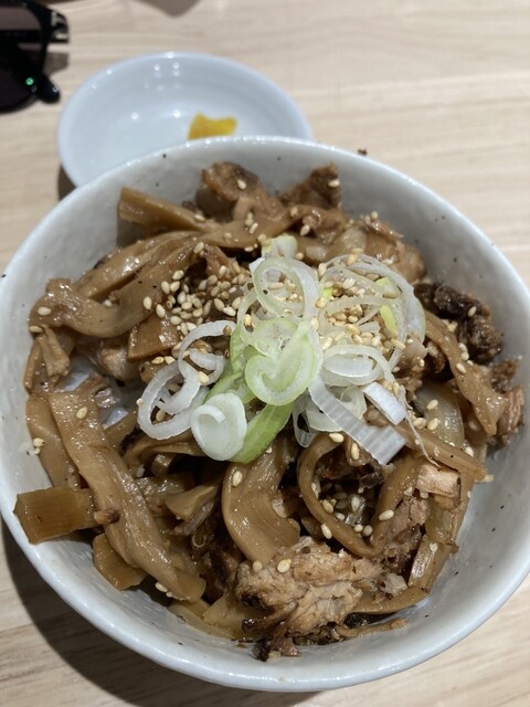 郷飯はチャーシューとメンマ、白ネギ、白胡麻が乗せられたご飯。こちらも具沢山だ。かなりの満足、満腹。全ての品質がかなり良い店だった。