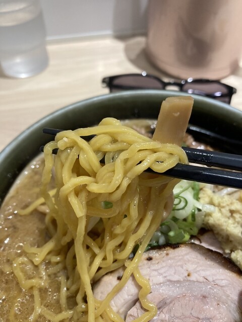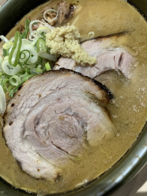 125kgメガトンパンチさんさんの投稿を見ていたら、おや、自動車通勤していた前の会社の近くじゃん。途端にがっつり味噌ラーメンを食べたくなったので、早速車で向かう。平日13時半過ぎに到着したら、既に30人待ちなのは流石お盆休み。日陰且つそよ風だったのが幸いした。店内は白壁と白木カウンターによる清潔な印象を与えるものだ。