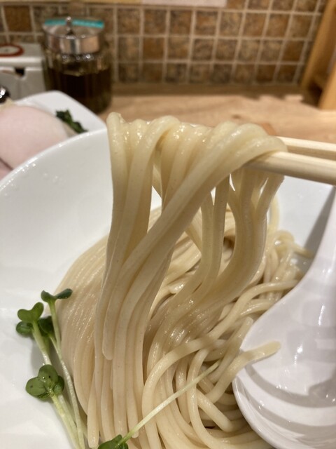 塩のみで味付けされたという鶏胸肉は、しっとりと柔らか。三元豚を使ったチャーシューも柔らかく、脂の味も良い。胡麻和えほうれん草と、たけのこの穂先も、箸休めにちょうど良かった。煮卵の卵黄は半熟。これら具材に言えるのは、美味しいけれども味付けは控えめ。麺とスープの引き立て役に徹していた。