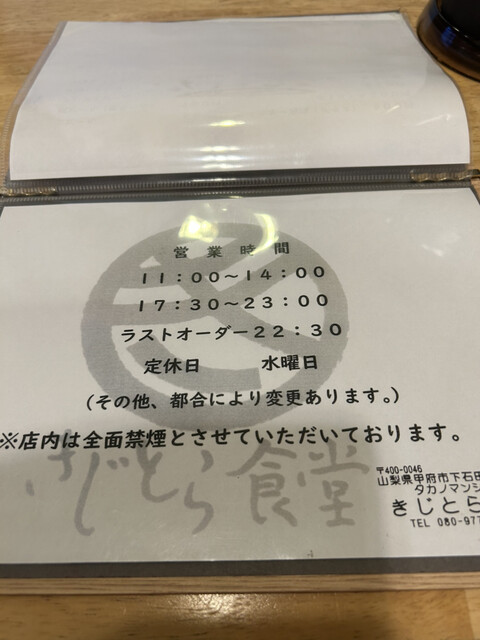 きじとら食堂(国母、甲斐住吉、南甲府/食堂、ラーメン)