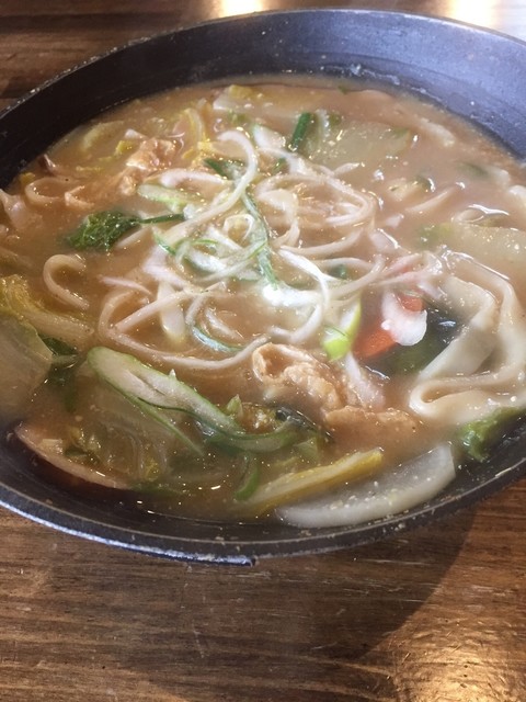 野菜ほうとうは、豚肉ではなく鶏肉を使用していることやかぼちゃがないこともあり従来のテイストとは一線を画す野菜の旨味が伝わる上品なスープ。いり粉がいいアクセントとなっている。最後までスープを飲み干せる。