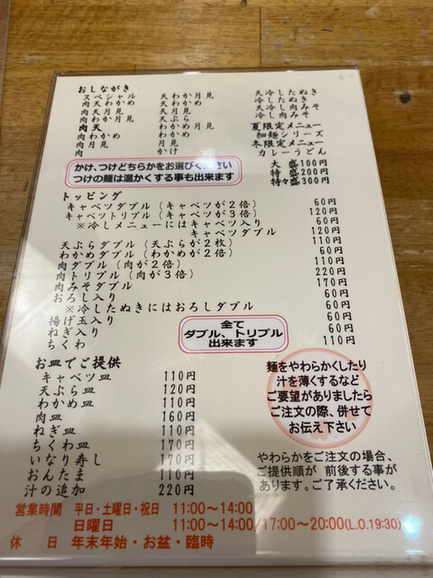 スタンダードなつけうどんを捜すが、表示なく店員さんに聞いてしまったほど。あることが分かりオーダー。