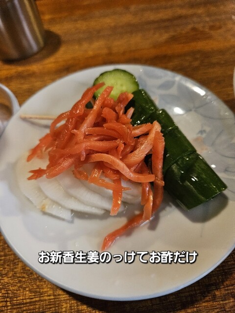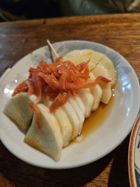 煮込み、しろタレ、たん生赤いとこお酢、かしら素焼き、お新香しょうがのっけてお酢、ボイルとハツ生は私の定番です