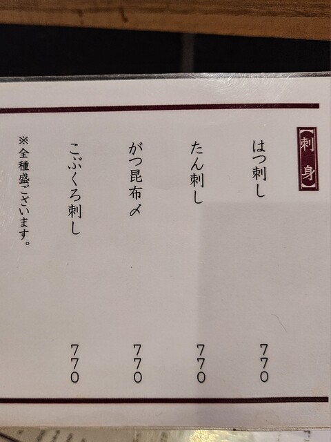刺し盛りは今回は、ハツ、タン、ガツでした。