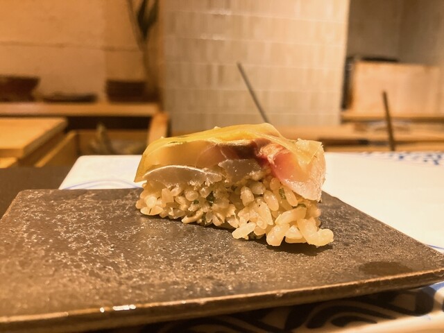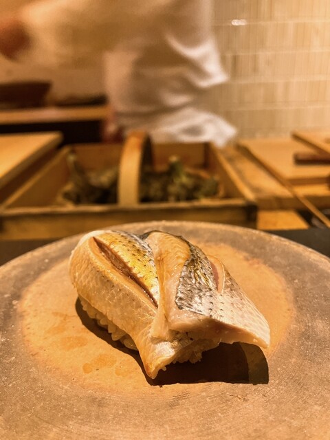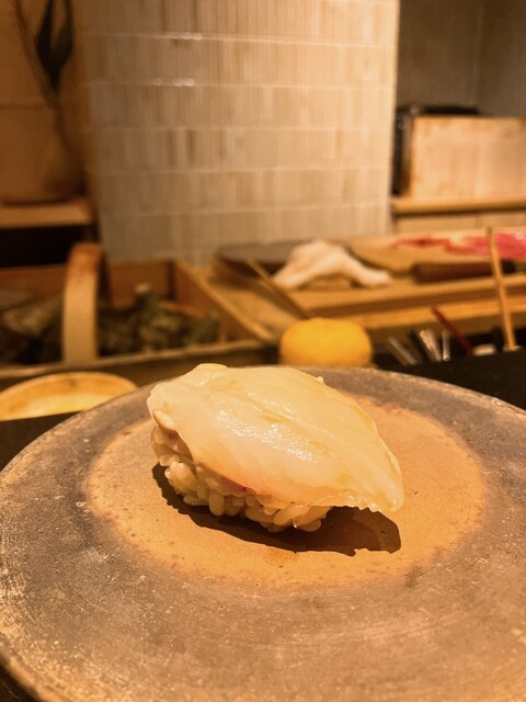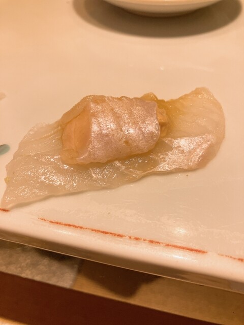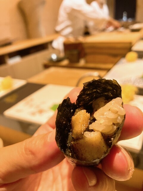 仙鳳趾産の牡蠣も素晴らしかったです。プリプリの大ぶりな牡蠣と、ほどよい加減で握られた温かみのあるシャリ。これをスプーンに乗せたまま頂くと、牡蠣の濃厚な旨味とシャリとが口の中で見事に一体となり、絶品でした!